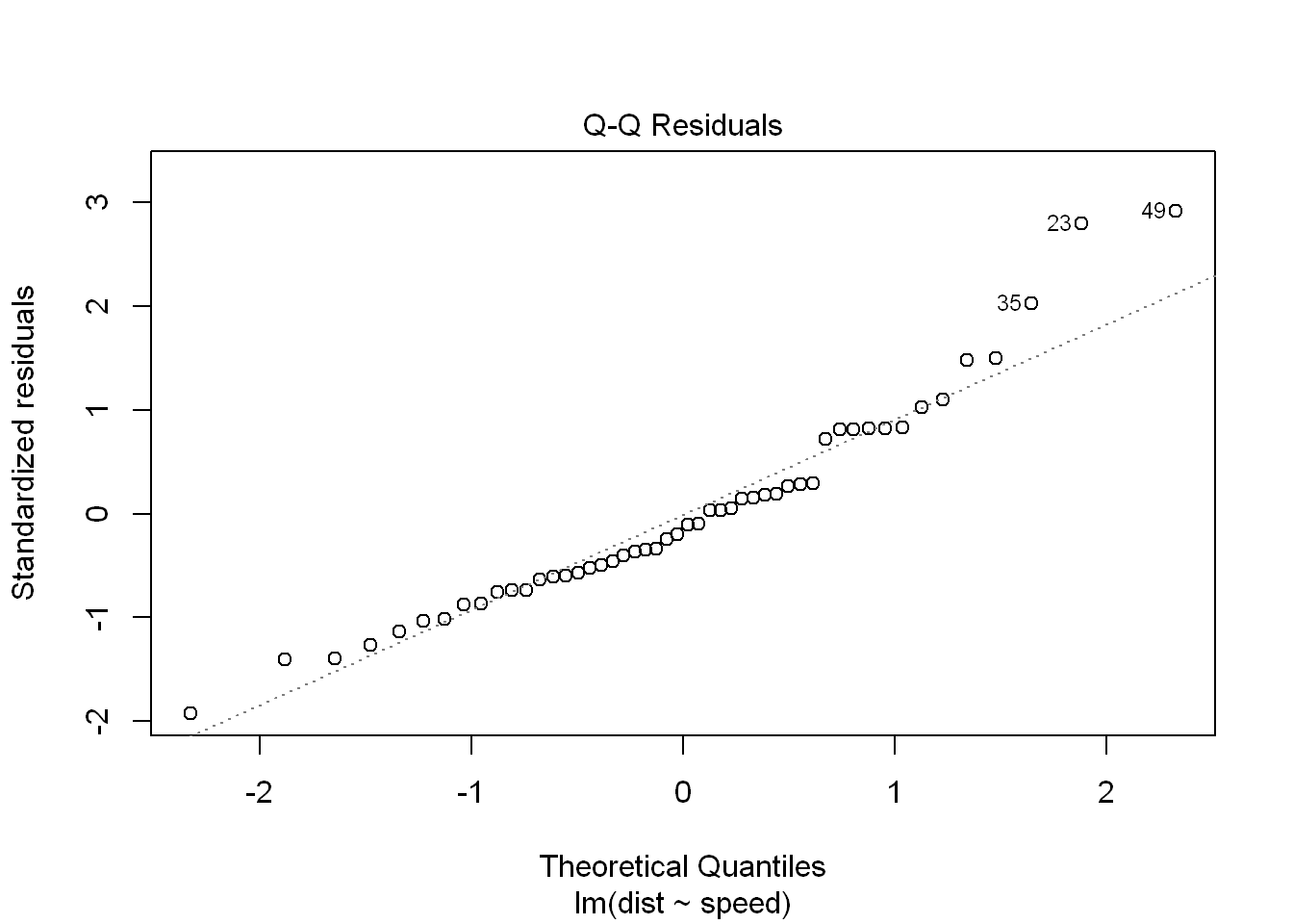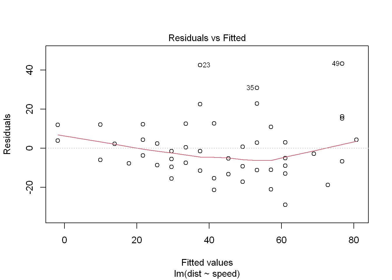 fit = lm(dist ~ speed, data = cars)