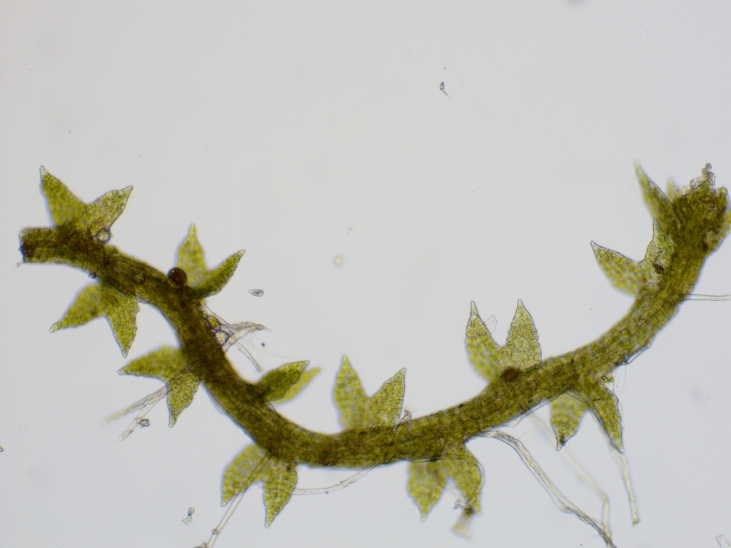 Poorly known in the region but cosmopolitan across the temperate and boreal regions of the Northern Hemisphere, Cephaloziella hampeana follows standard green-to-red, small thread-like growth form seen in most member of the genus. Under the land lens, the unornamented spreading leaves are lobed with a sinus descending to around half the leaf length. To distinguish this species from others in the genus, care must be taken to confirm the absence of underleaves as well as for gynoecia and androecia, which should be present on different branches of the same plant.