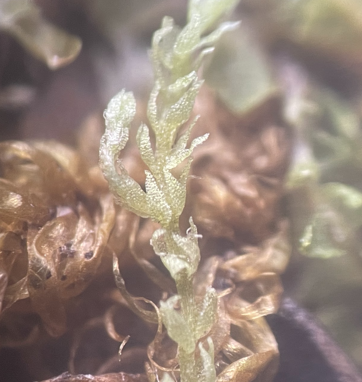 With relatively wide (> 1 mm) and worm-like pale green shoots clustering amongst and growing through Sphagnum in subalpine areas, F. albescens takes some work to see. The round, shallowly lobed and concave leaves are much wider than the stem and standout as unique in their habitat, especially when paired with a long, unlobed and utterly visible (at least with a hand lens) underleaf. Under the microscope, oil bodies should be absent.