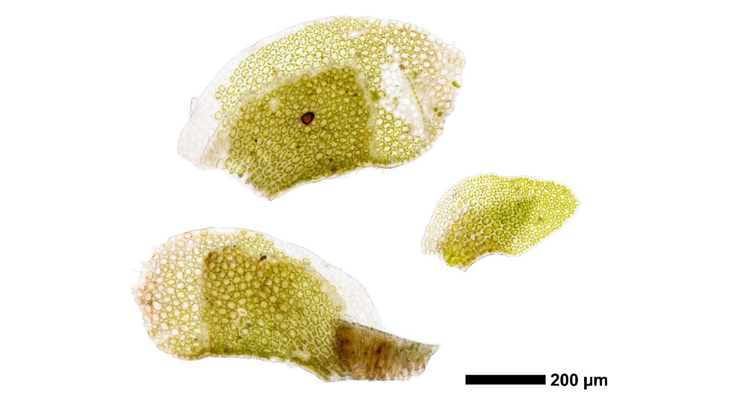 A small and regionally rare liverwort known from one poorly located specimen from the early 1900s, S. glaucocephala is a boreal wood-dweller with green-to-brown leafy shoots to 15 mm long and 1.5 mm wide, The two unequal lobes of the leaf are smooth at their bases and variably toothed towards their tip, uniting along a basal fold (“keel”) that is rounded, not acute. The lower lobe is only about 1/2 as wide as it is long, and under the microscope you should note that the cells at its margin have thicker walls than those in the middle of the lobe. Also look for the common and abundant red-brown gemmae borne on very small shoots; they should be one-celled under the microscope.